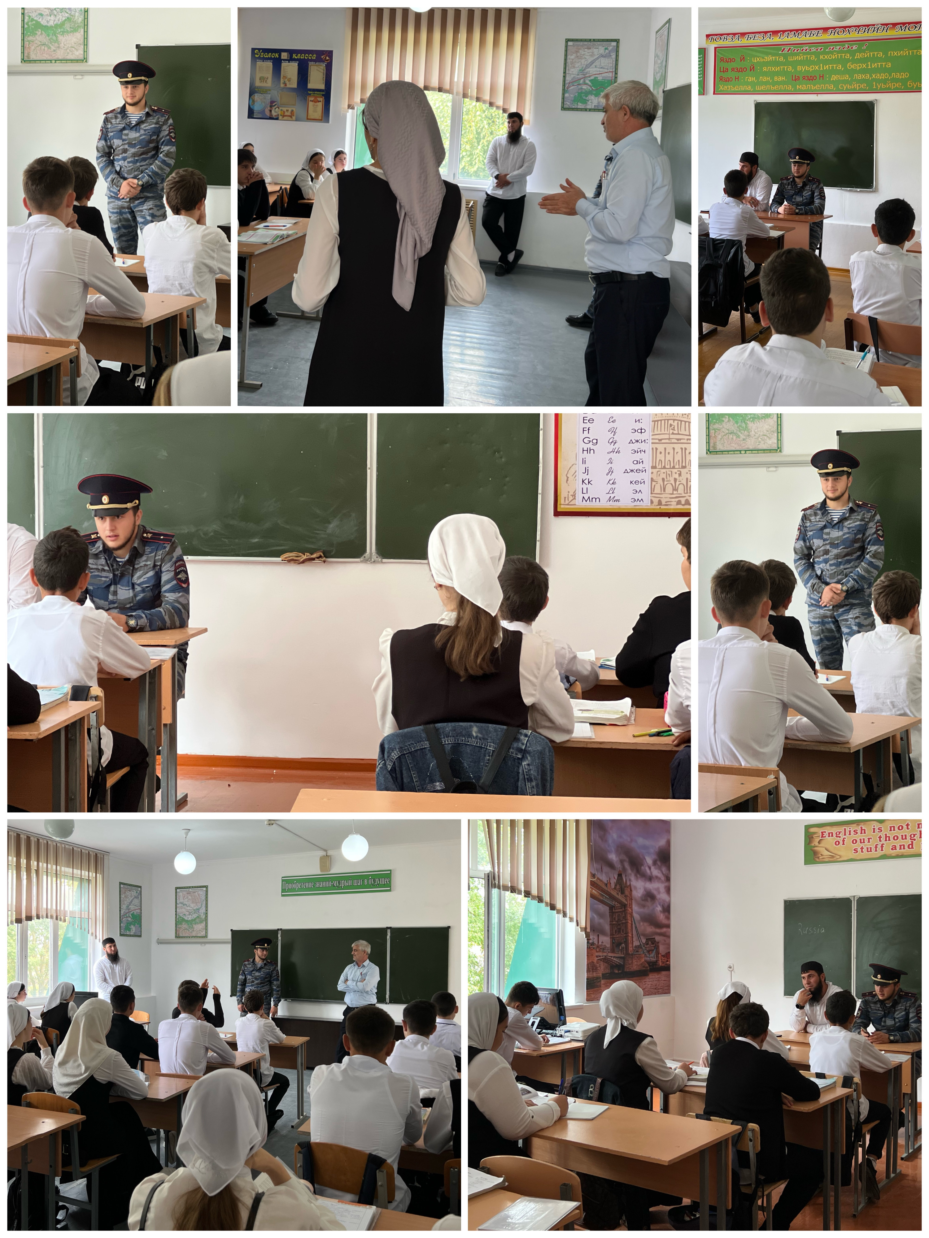 Сегодня 8 августа в МБОУ «Старощедринская СОШ» состоялась Классная встреча с УУП ОМВД России по Шелковскому району младшим лейтенантом Элиевым Билалом Имрановичем.