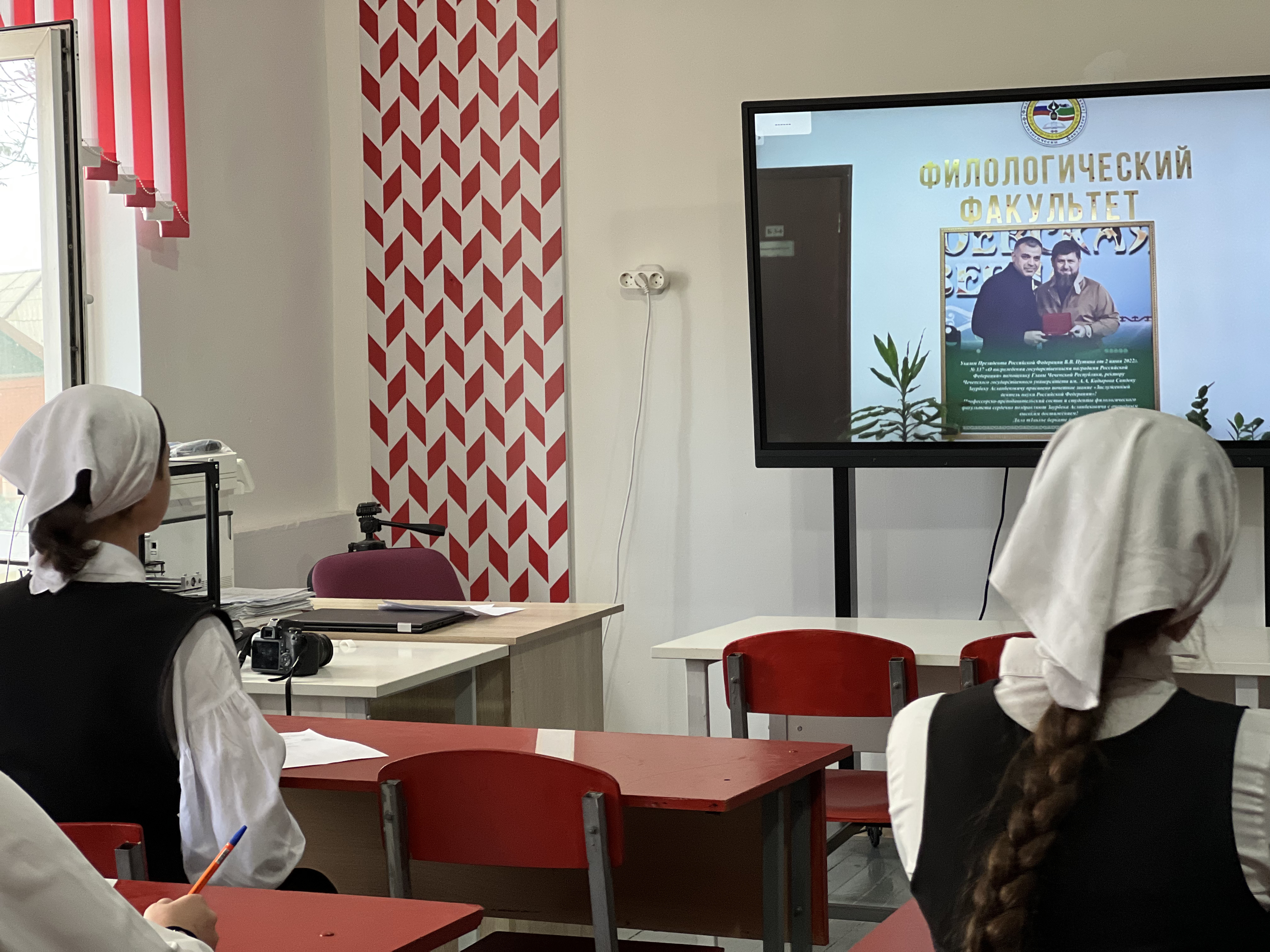 В рамках профориентационной работы сегодня в МБОУ «Старощедринская СОШ» прошла олимпиада по чеченскому языку среди учащихся 11-х классов. Студенты ЧГУ им. А.А.Кадырова, филологического факультета провели для наших учащихся профориентационную работу, рассказали о преимуществах учебы на их факультете, также рассказали нашим учащимся о направлениях подготовки, и какую профессию они могут выбрать закончив именно их факультет.