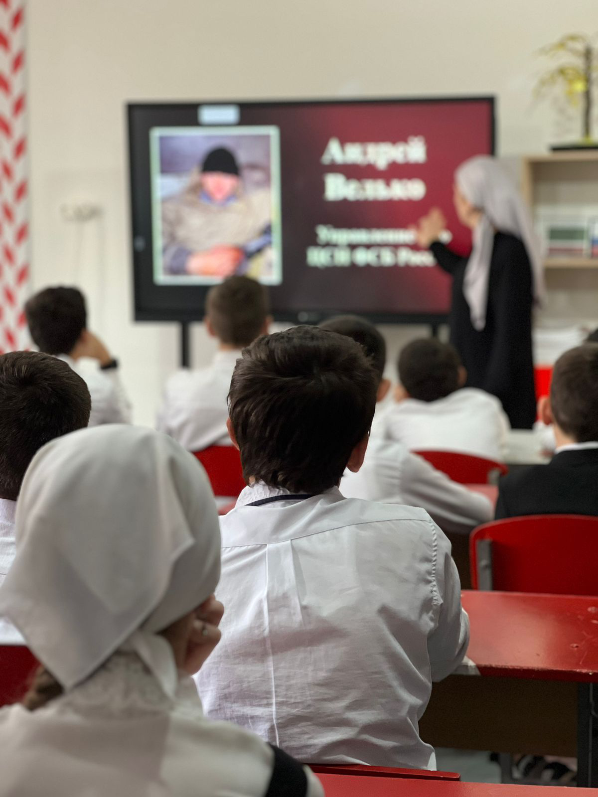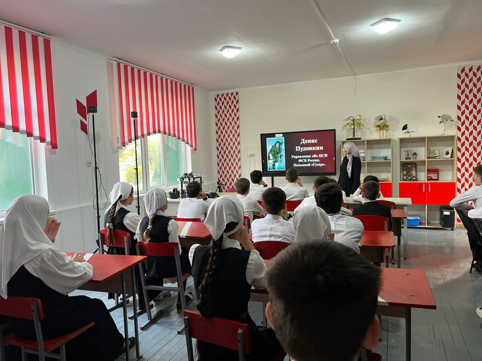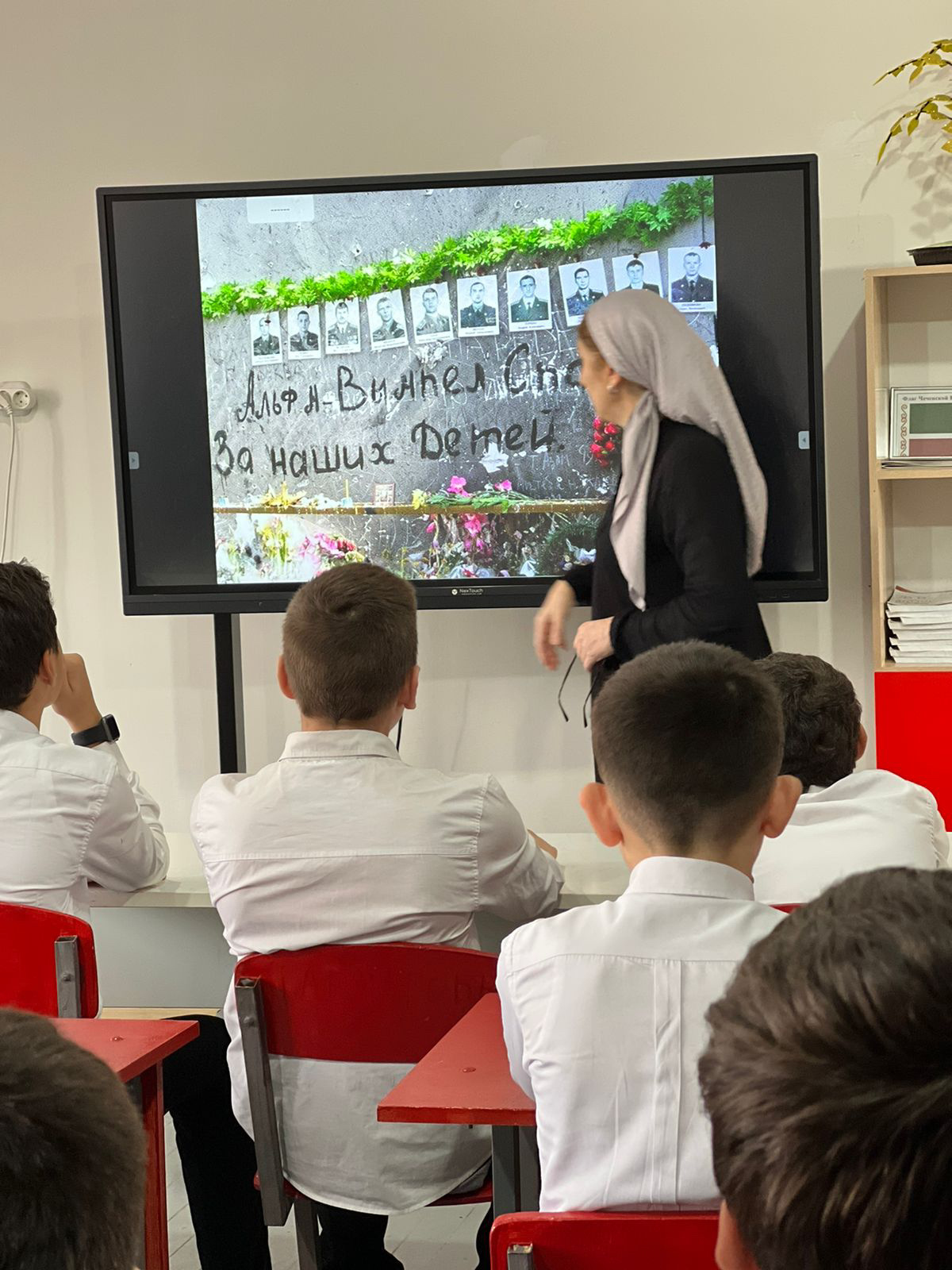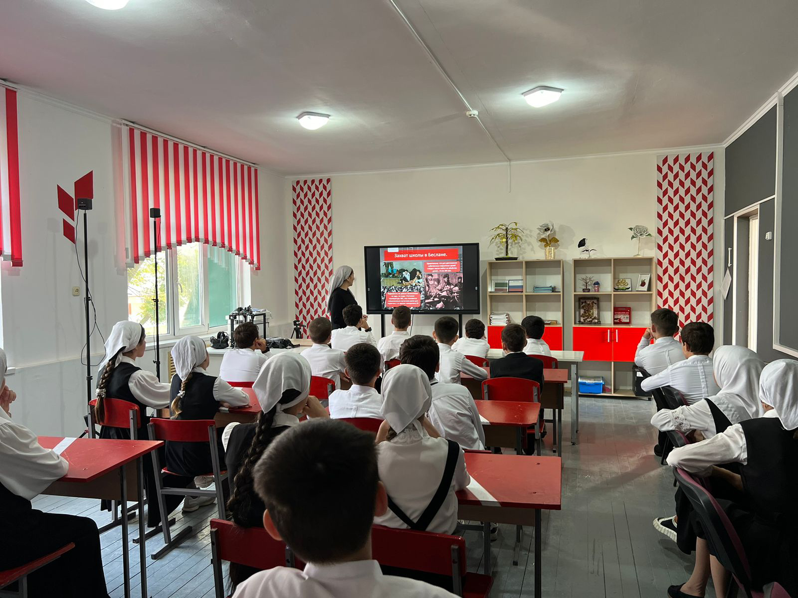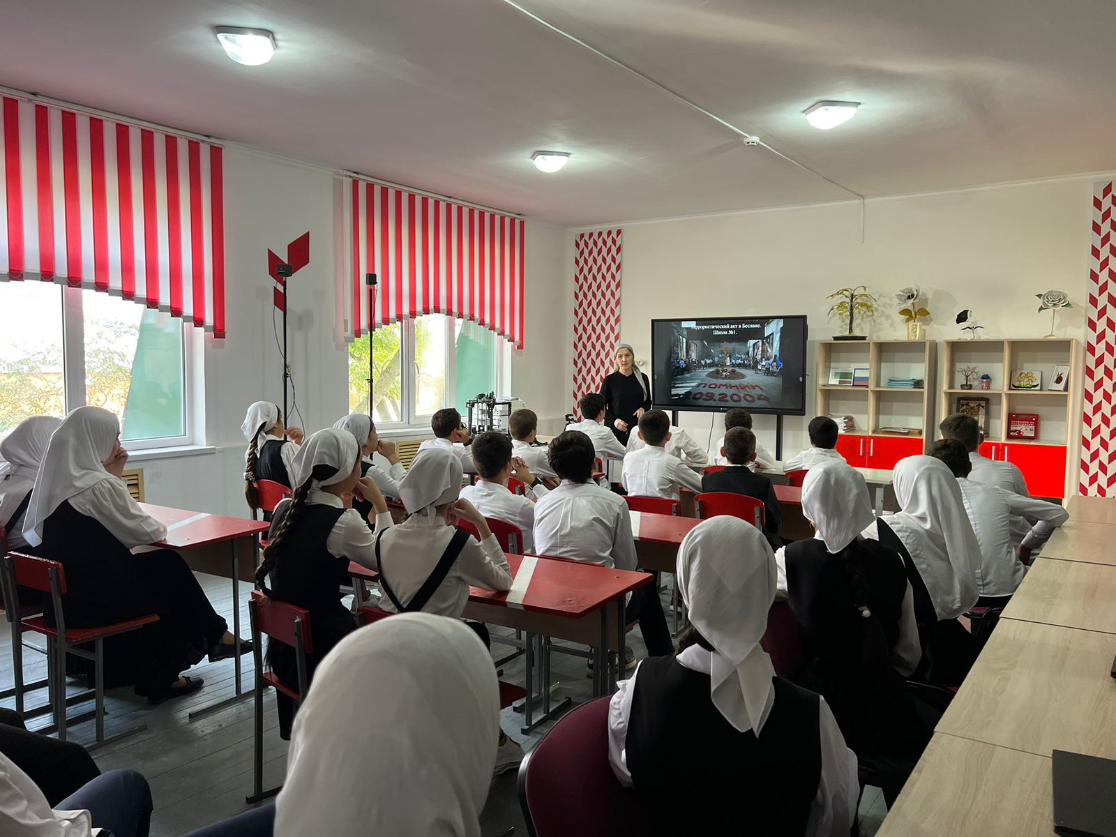 Террористический акт в Бесла́не — захват заложников в школе № 1 города Беслана (Северная Осетия), совершённый террористами утром 1 сентября 2004 года во время торжественной линейки, посвящённой началу учебного года. В течение двух с половиной дней террористы удерживали в заминированном здании более 1100 заложников[4] (преимущественно детей, их родителей и сотрудников школы) в тяжелейших условиях, отказывая людям даже в удовлетворении минимальных естественных потребностей.