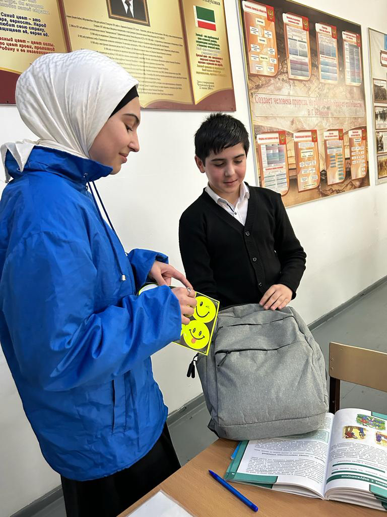 В нашей школе активисты движения «Юные Кадыровцы» провели акцию по раздаче светоотражающих элементов.