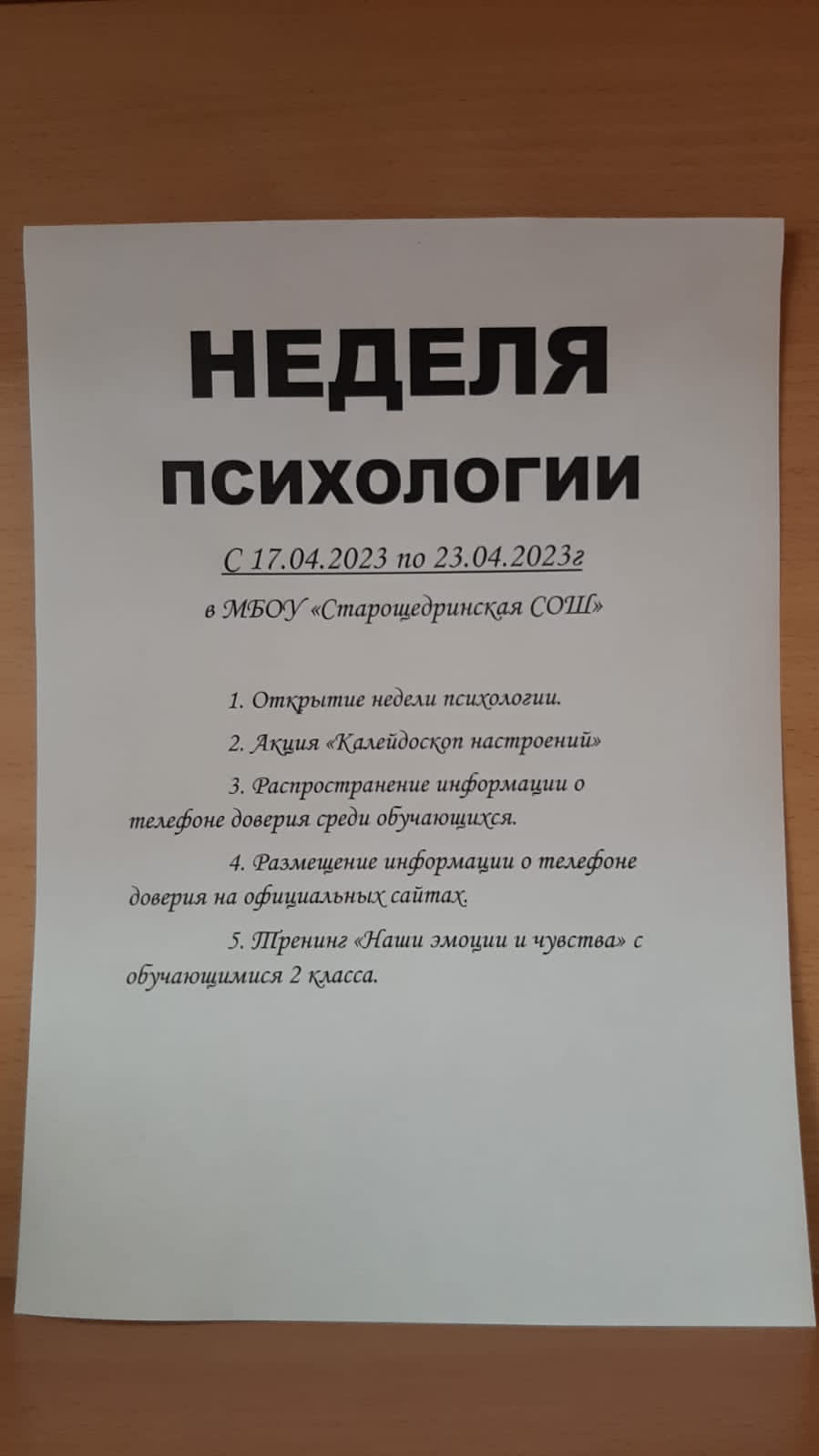 В МБОУ «Старощедринская СОШ» прошло открытие недели психологии!