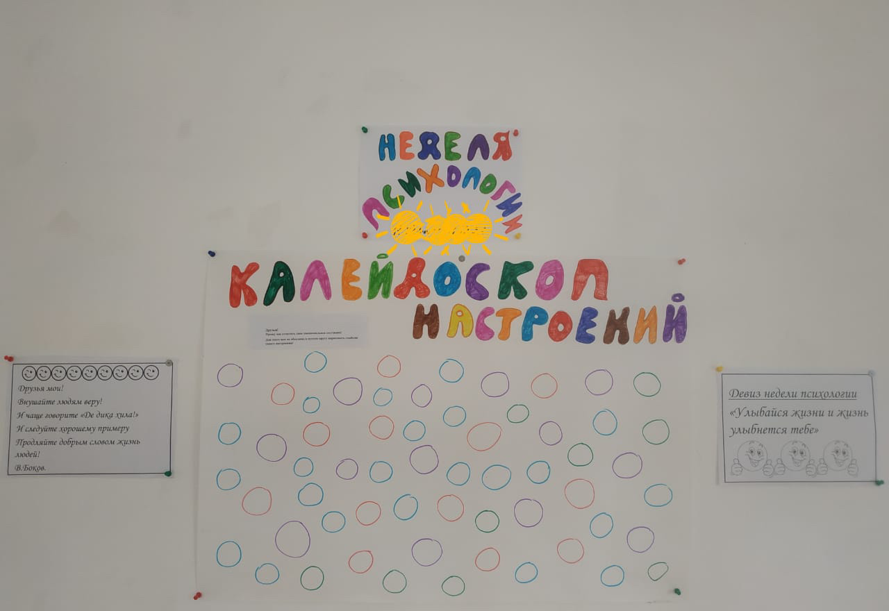 В рамках проведения недели психологии 17 по 23 апреля 2023 года в школе прошла акция "Калейдоскоп настроений"