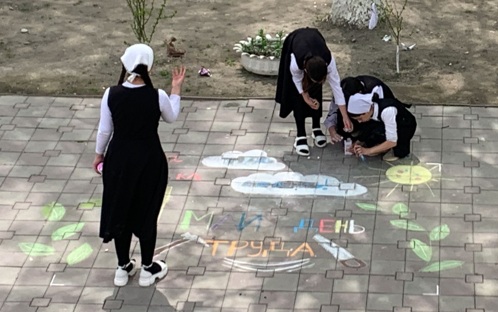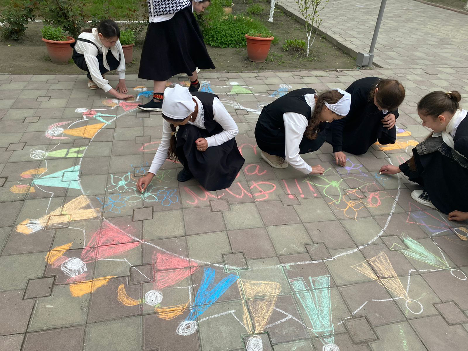 Учащиеся нашей школы приняли участие в конкурсе рисунков на асфальте, посвященном празднику «Весны и труда»