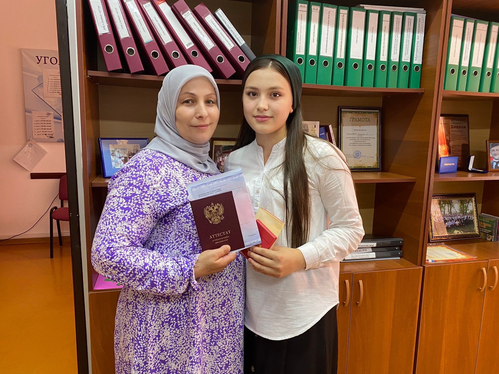 Гордимся нашими выпускниками, выпускница 11-го класса 2023 года Саитхаджиева Самира Исаевна! Дала т|аьхье беркате йойла👏🏻