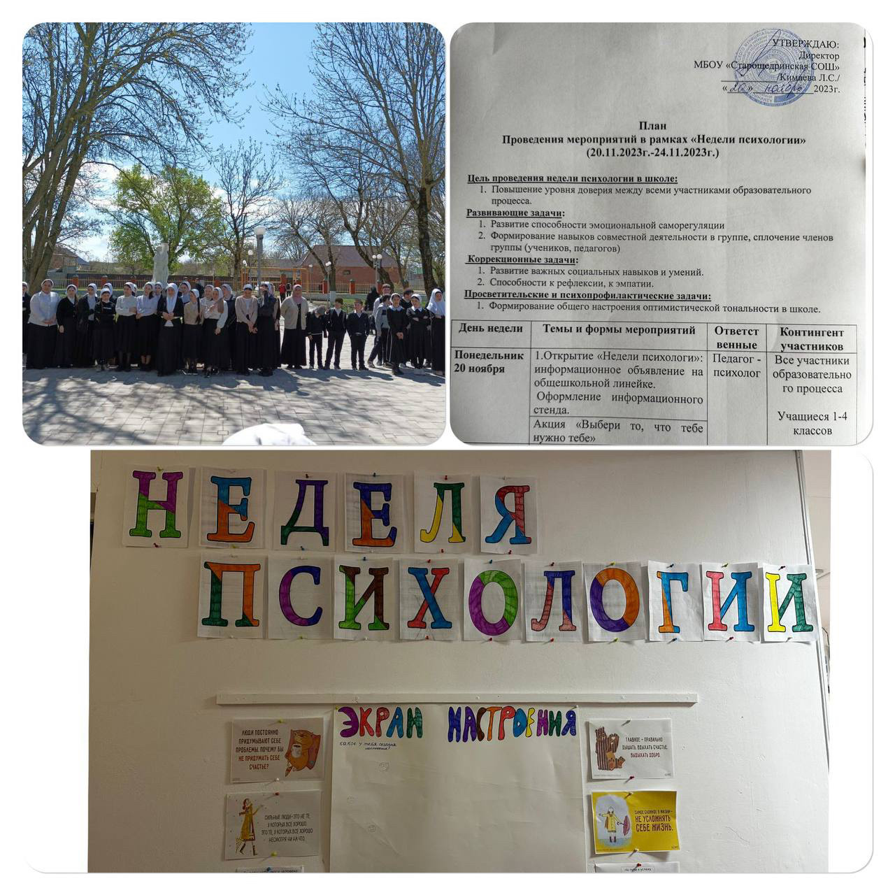 Открытие «Недели психологии» (20.11.2023г.-24.11.2023г.) Информационное объявление на общешкольной линейке. Оформление информационного стенда. МБОУ «Старощедринская СОШ»