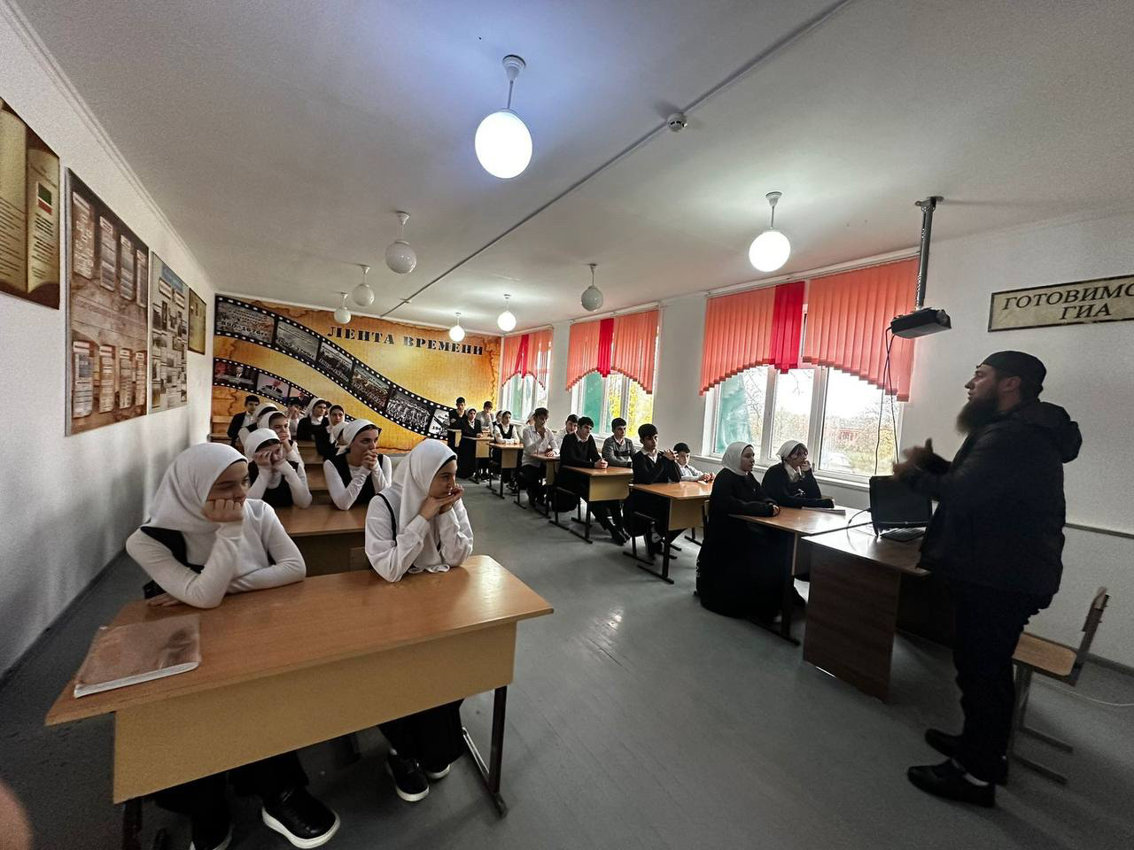 В рамках «Недели психологии» Беседа с участием педагога ДНВ Медиев А.А. на тему «Г1иллакх» с учащимися 8-11 классов.