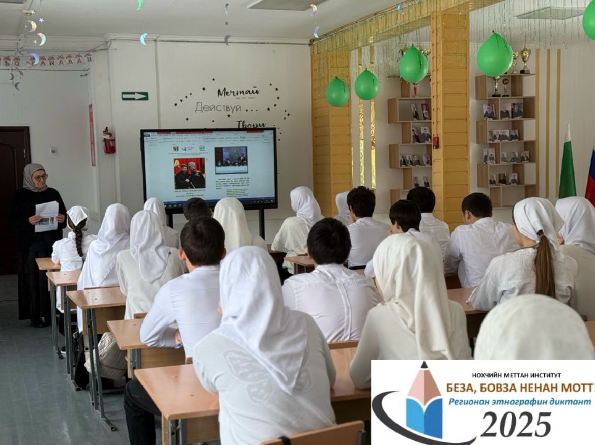 27.02.2025В МБОУ «Старощедринская СОШ» 27.02 прошел Региональный этнографический диктантВ нашей школе прошел Региональный этнографический диктант «Беза, бовза ненан мотт!», в котором приняли участие обучающиеся от 14 лет и старше (9-11 классы), родители (законные представители), а также учителя .Этнографический диктант не только проверяет знания участников о языке и культуре, но и стимулирует их к дальнейшему изучению и исследованию своих корней. Это также отличная возможность для объединения людей разных возрастов и профессий, заинтересованных в сохранении чеченской культуры.