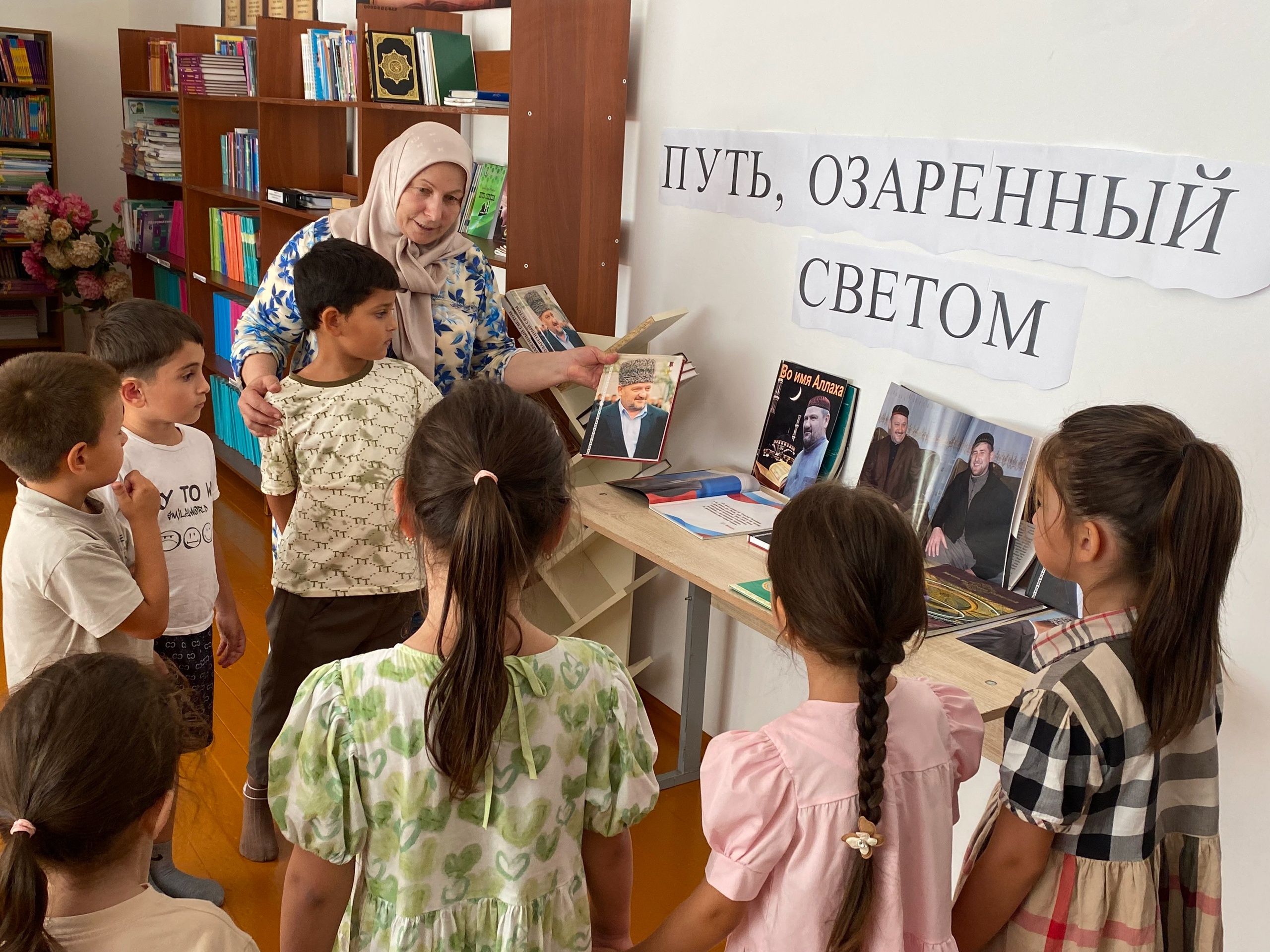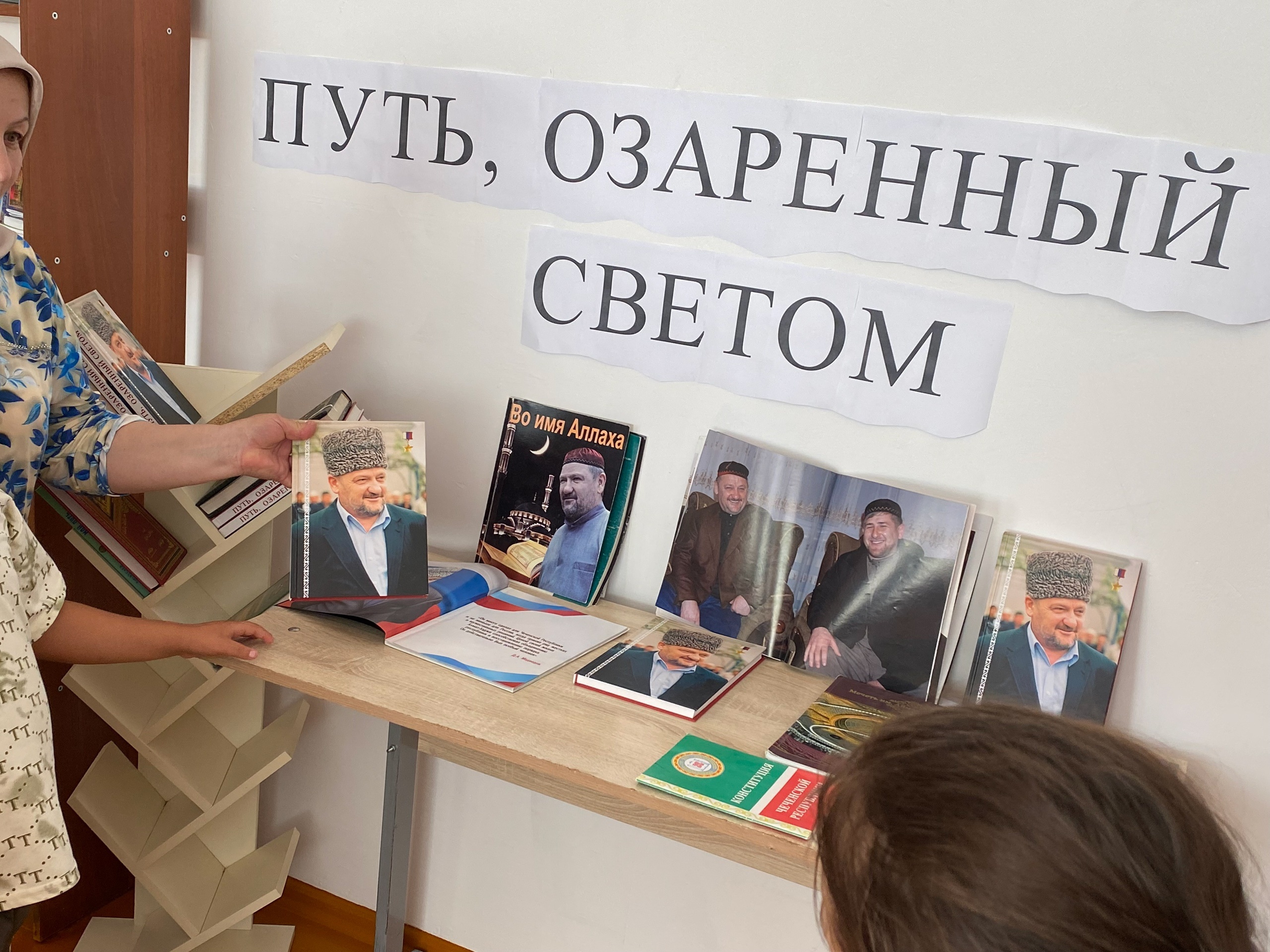 Библиотекарь школы организовала и провела книжную выставку,посвященную первому Президенту Чеченской Республики, Героя России А-Х.Кадырову.